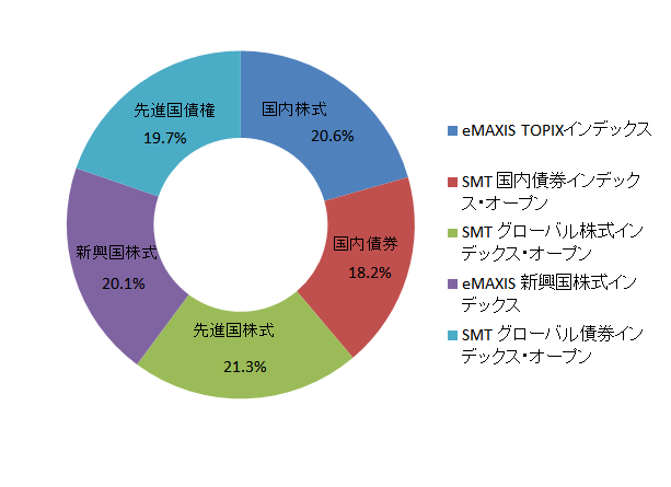 TOPIXが+49.10%、海外株式(先進国)が+59.54%、海外株式(新興国)が+28.43%、国内債券が+3.25%、海外債券(先進国)が+29.44%でした。